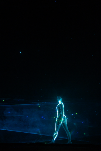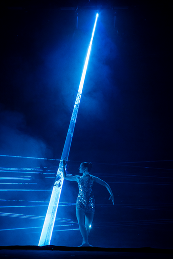 Performance de dança apresentada na premiação de automação para GS1 com holografias e lasers.